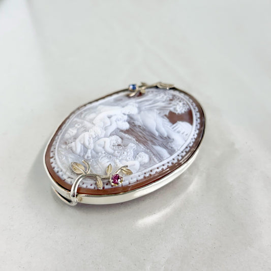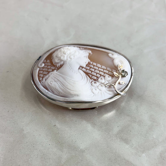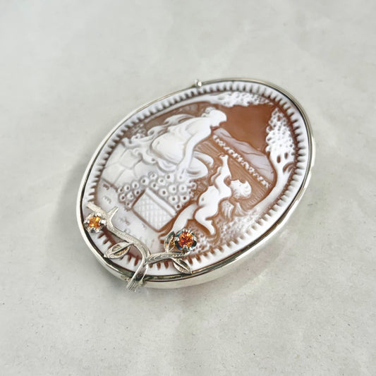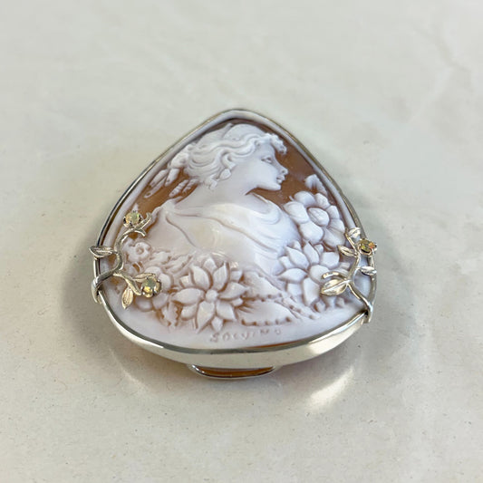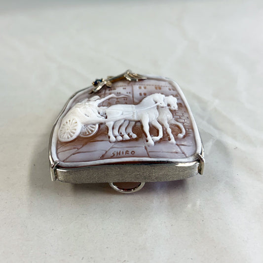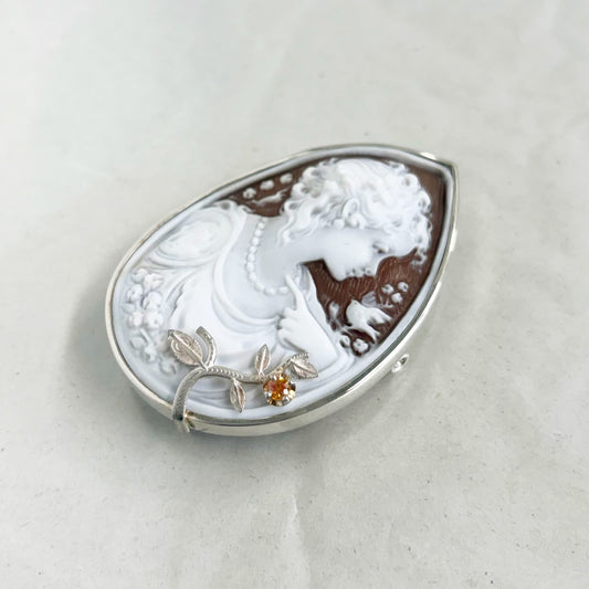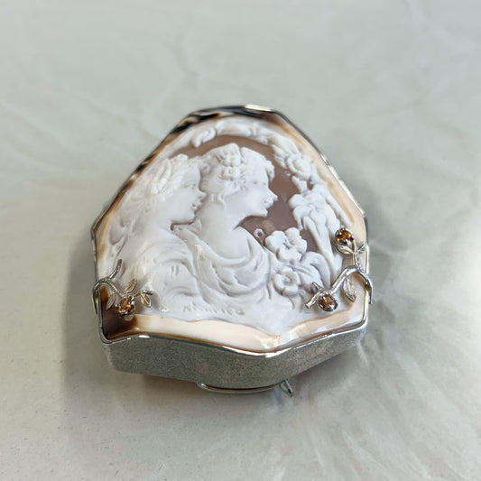 SV900(Pt) シェルカメオ/サファイア(カルミネ作) ブローチ