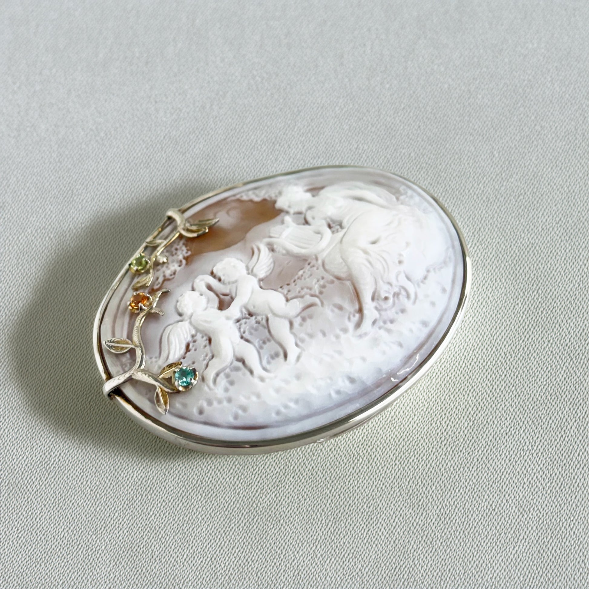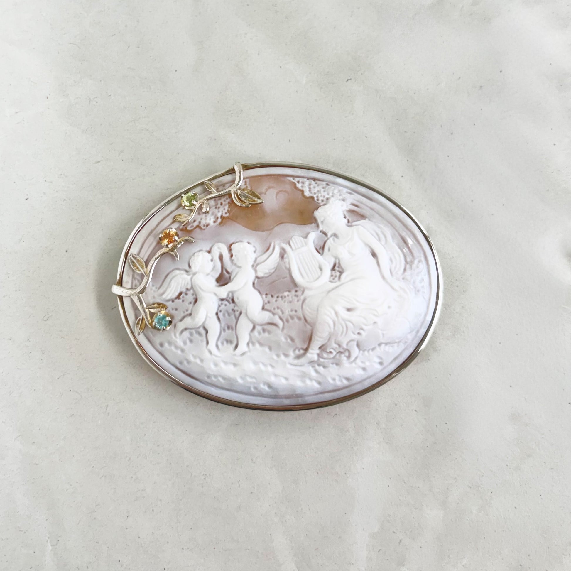 SV900(Pt) シェルカメオ/サファイア/ペリドット/アパタイト ブローチ