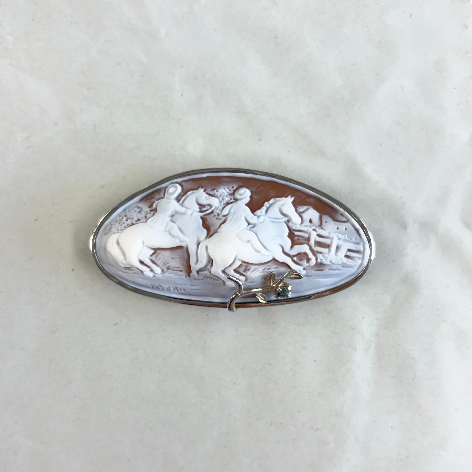 カメオの繊細な彫刻。サファイアがアクセントに。