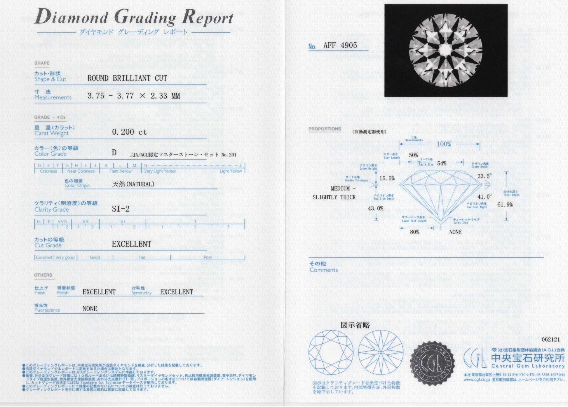 ■鑑定機関 中央宝石研究所 AFF 4905