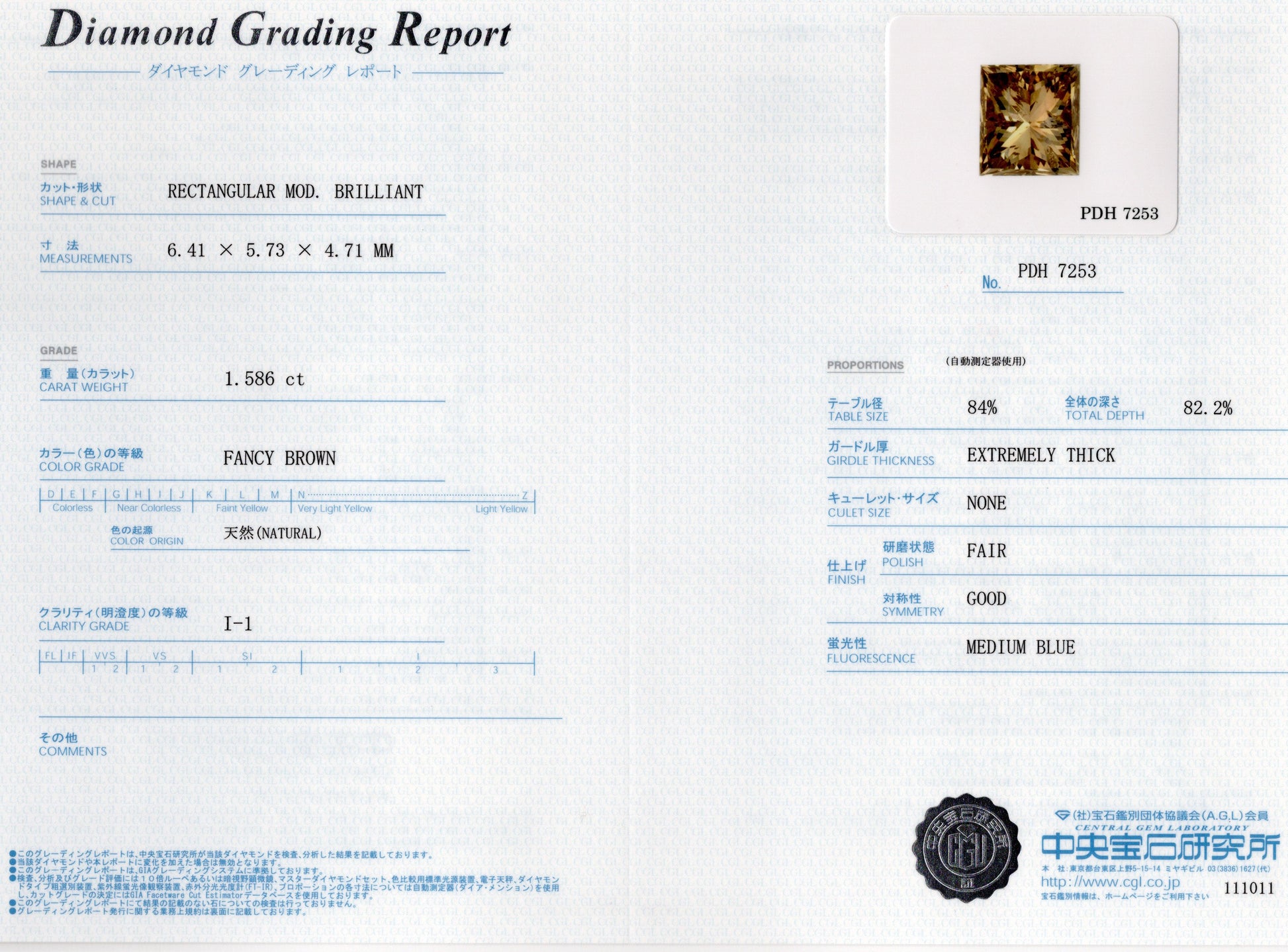 ファンシーブラウンダイヤモンド レクタンギュラモディファイドブリリアント 1.586ct