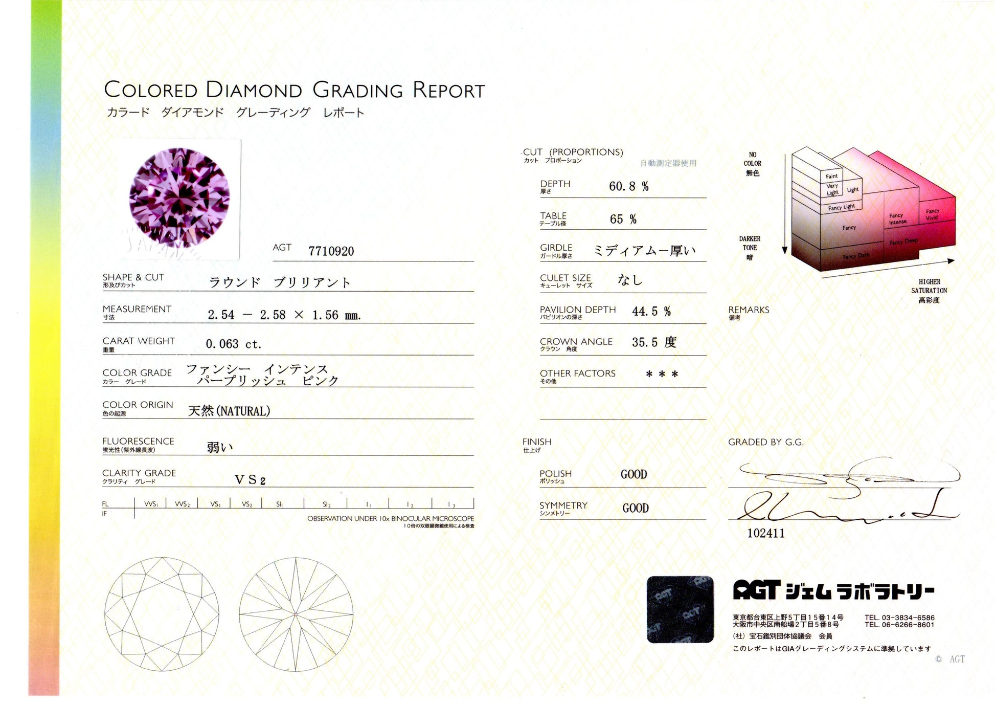 ファンシーインテンスパープリッシュピンクダイヤモンド ラウンドブリリアント 0.063.ct