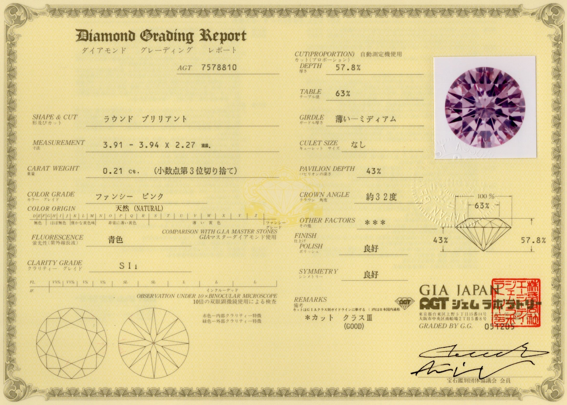ファンシーピンクダイヤモンド ラウンドブリリアント 0.21ct