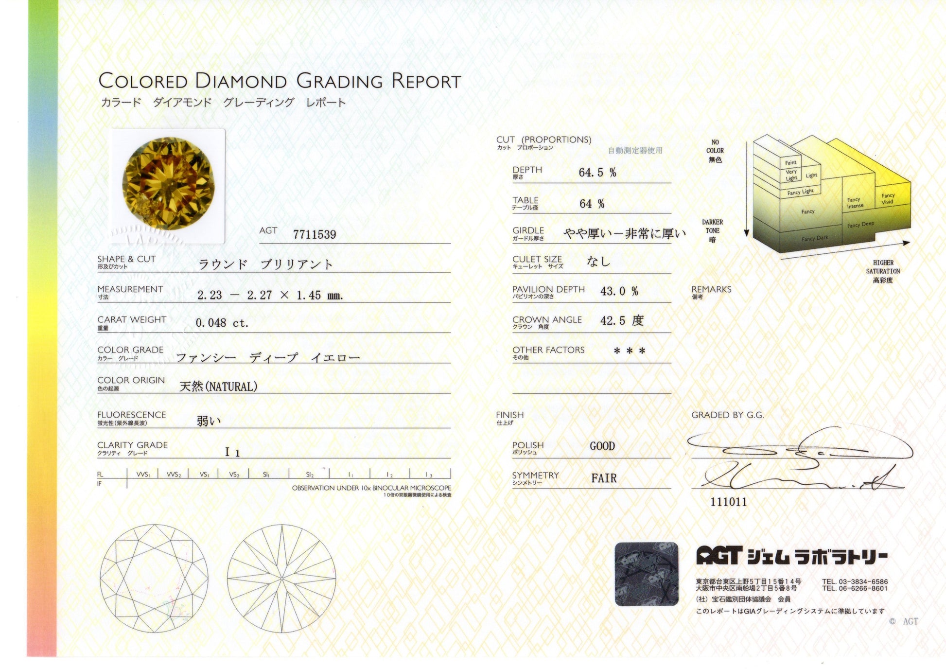 ファンシーディープイエローダイヤモンド ラウンドブリリアント 0.048ct