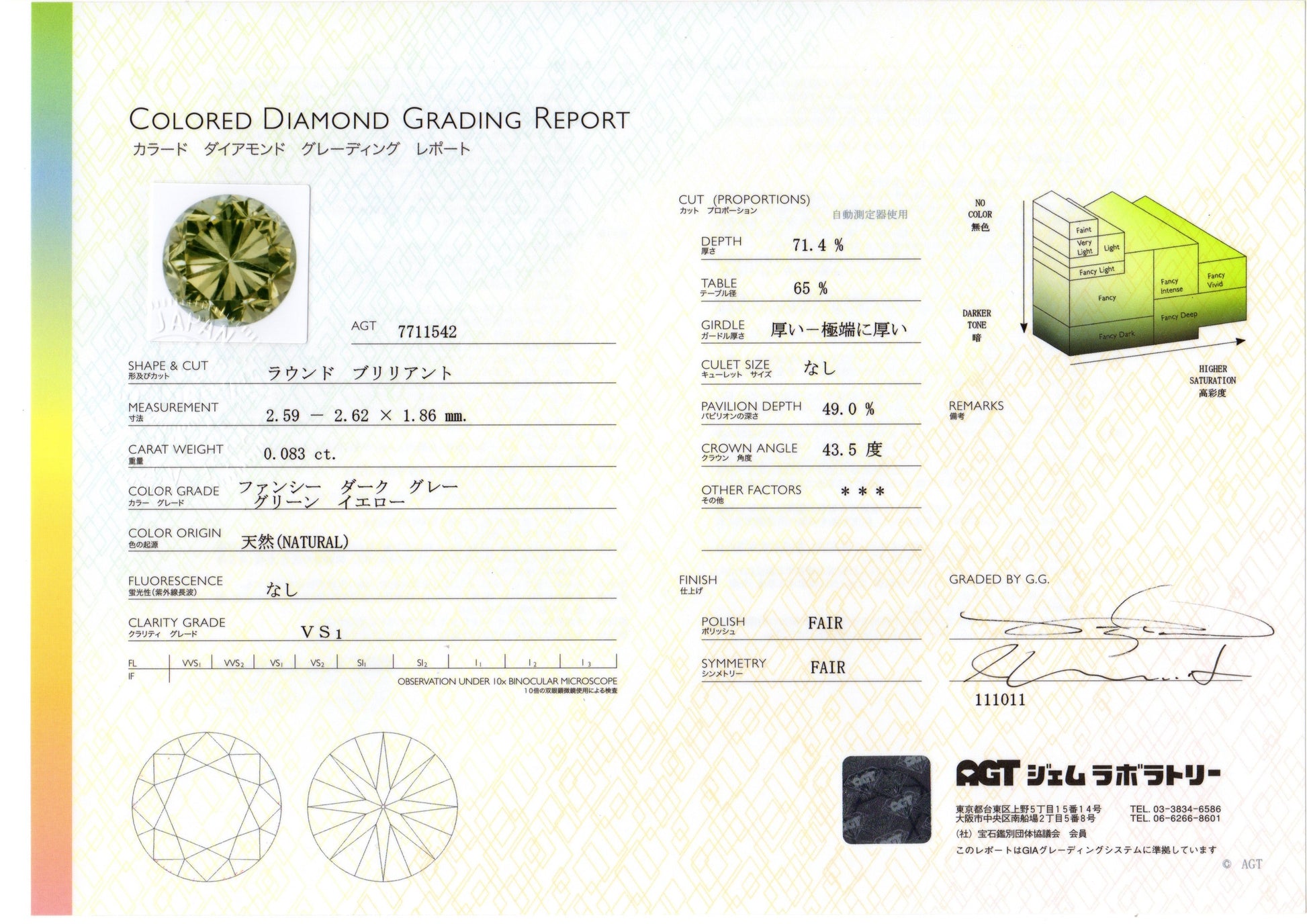 ファンシーダークグレーグリーンイエローダイヤモンド ラウンドブリリアント 0.083ct